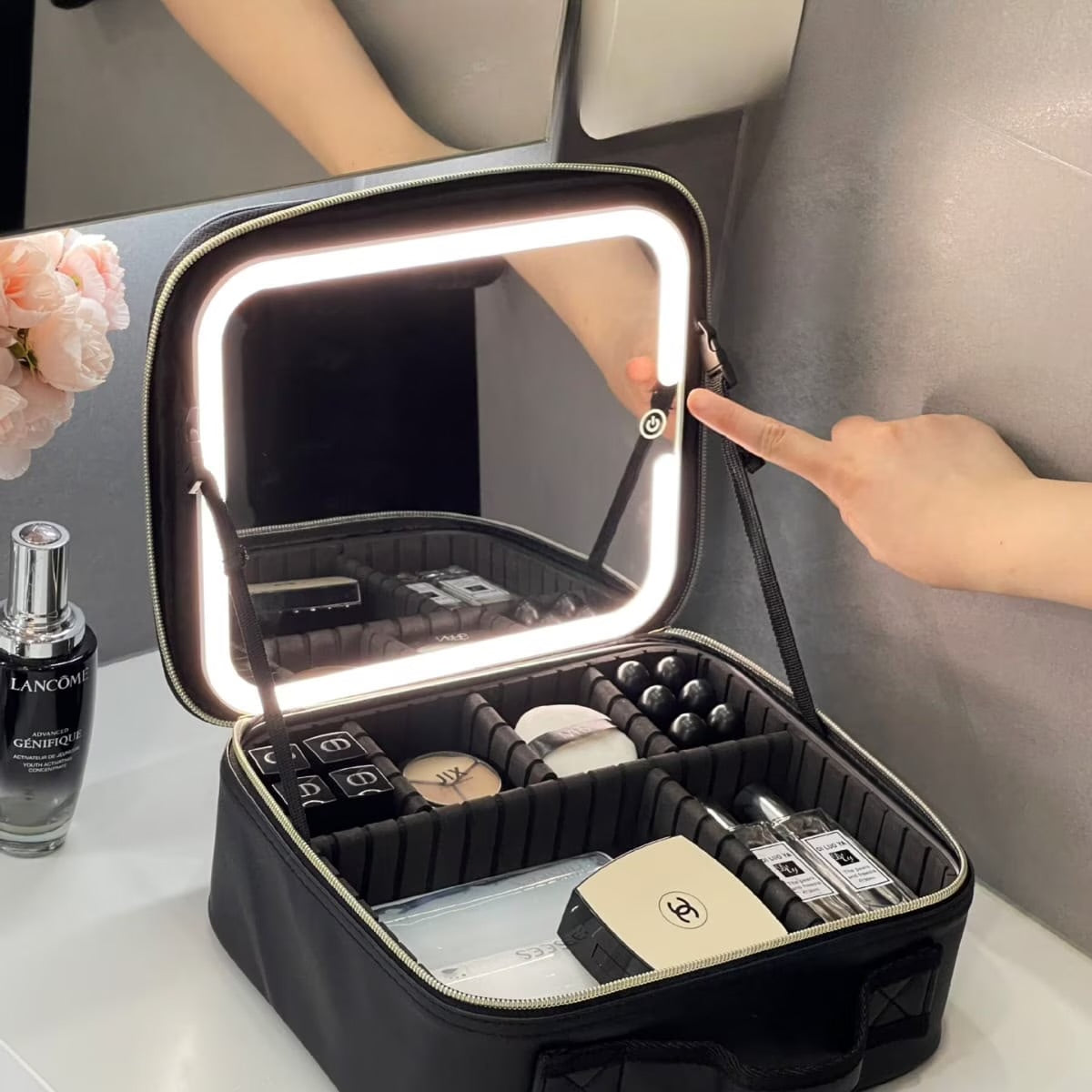 ¡Organiza tu maquillaje como una profesional con la Maleta de Maquillaje Portátil con Luz LED y Espejo!